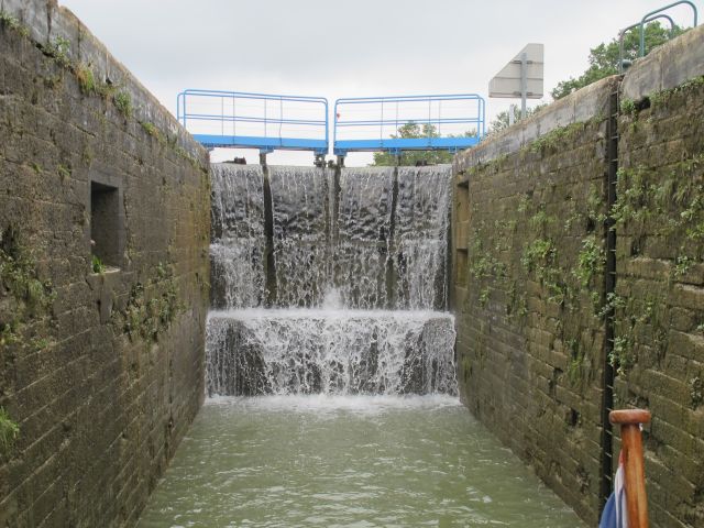 This last part of the canal took us three days. 73 kilometres, 46 locks, 7 metres up and 157 metres back down again.
